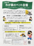 「わが家のペット自慢」写真募集中「うちのペット」のあんな表情やこんなポーズ、誰かに見て欲しい!そんな「ベストショット」はありませんか?!「わが家のペット自慢」と題して、写真を募集し応募いただいた写真を1F交流ホールで展示させて頂く企画がスタートします。ぜひ、あなたのお家のペット写真をお寄せ下さい♪
